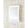 - 8-3/4″ diameter mirror with an adjustable arm that extends up to 12″