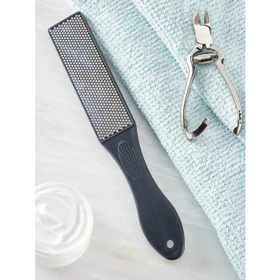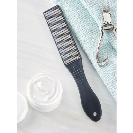 Once you own this top-quality nail file, you’ll never need to buy another flimsy disposable one again. This professional-grade foot file is coatedβon both sidesβwith finely crushed genuine diamonds. It’s durable, long-lasting, and will gently and effectively smooth away calluses, dry skin, and rough nail edges.
